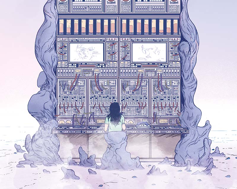 Spectacle immersif mêlant installation sonore, théâtre, performance et musique électronique. Depuis la salle de spectacle, le public est invité à communiquer avec l’au-delà grâce à des téléphones suspendus au-dessus de leur tête.